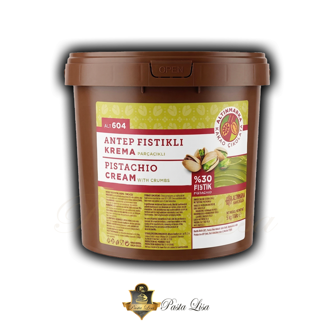 Pastacılık ve tatlı sektörünün vazgeçilmez markası Altınmarka'nın en çok aranan ürünlerinden biri olan Altınmarka Antep Fıstıklı Krema (ALT 604), içerdiği %30 gerçek Antep fıstığı oranıyla tatlılarınıza premium bir dokunuş katar. İçerisindeki fıstık parçacıkları sayesinde yerken mükemmel bir doku hissi verir.