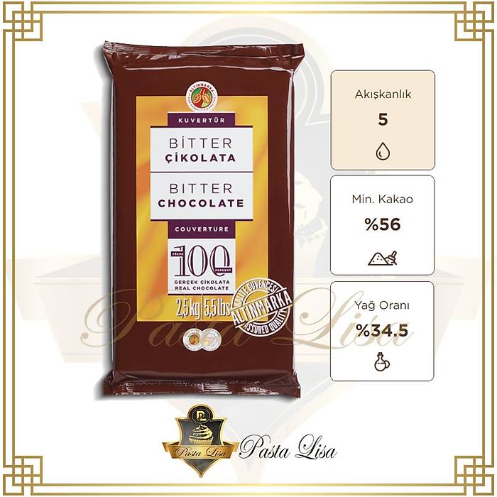 İçerik: Kakao kitlesi, şeker, kakao yağı, kakao tozu, emülgatör (ayçiçek lesitini)